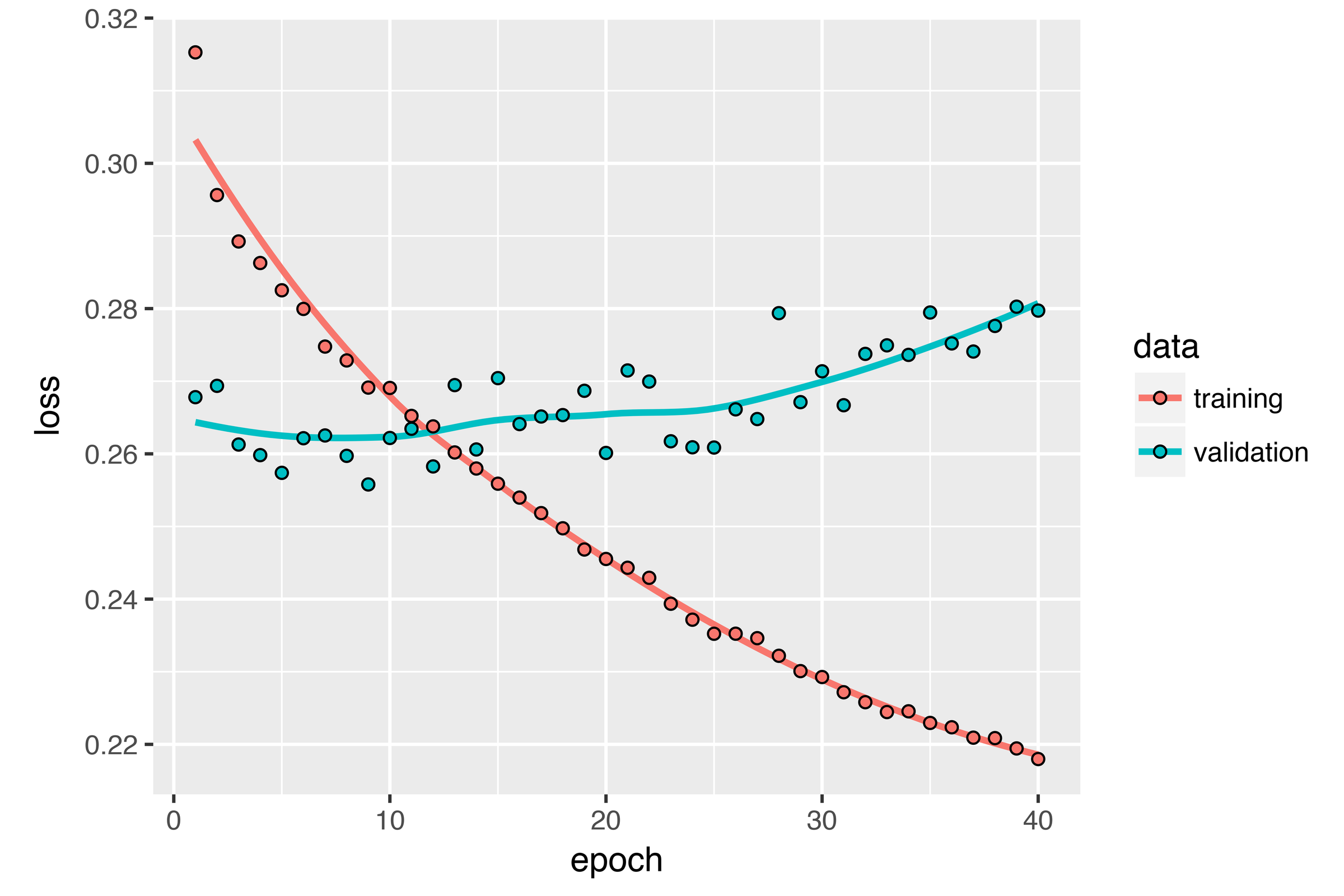 The plot below shows the results. Success! You’re no longer overfitting during the first 20 epochs. But although you have more stable evaluation scores, your best scores aren’t much lower than they were previously.
