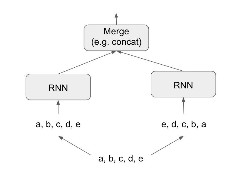 A bidirectional RNN exploits this idea to improve on the performance of chronological-order RNNs. It looks at its input sequence both ways, obtaining potentially richer representations and capturing patterns that may have been missed by the chronological-order version alone.