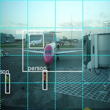 Let’s take our sample image again and plot it, this time including the grid cells. Note that we display the scaled image now - the way the network is going to see it.