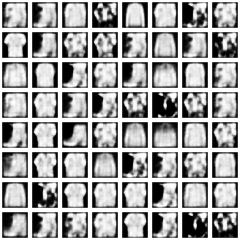 How well did that work? Let’s see the kinds of clothes generated after 50 epochs.