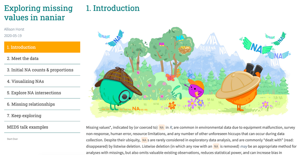 For example, here is what my Exploring missing values in naniar tutorial looks like: