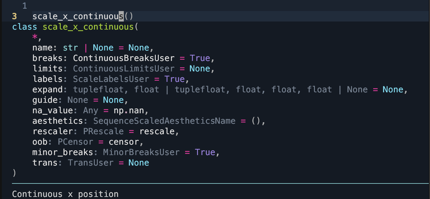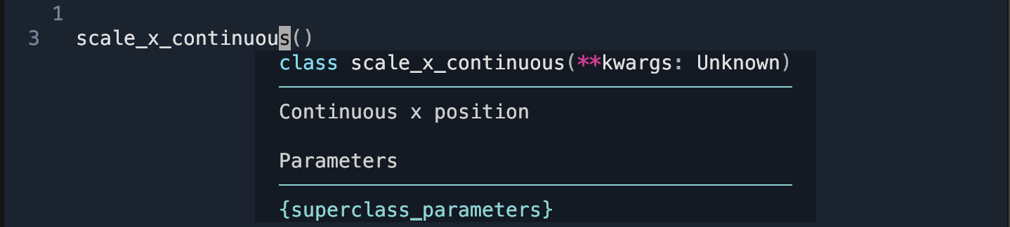 If you have worked with scales and passed in parameters, you might have encountered an inconvenience: your IDE could not provide meaningful suggestions. Previously, scales used **kwargs to capture common parameters, making it challenging for IDEs to offer specific guidance. With around 100 scales