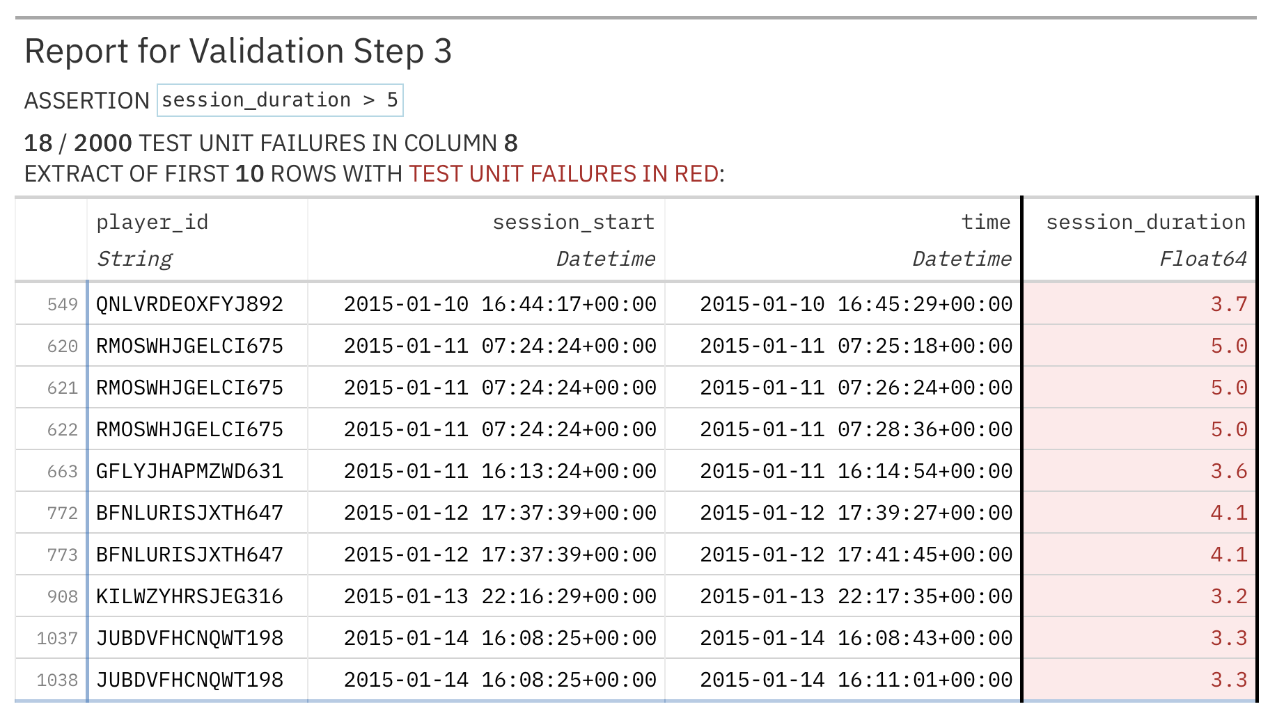 translates to 18 spots in a 2,000 row DataFrame where a data quality assertion failed. We often