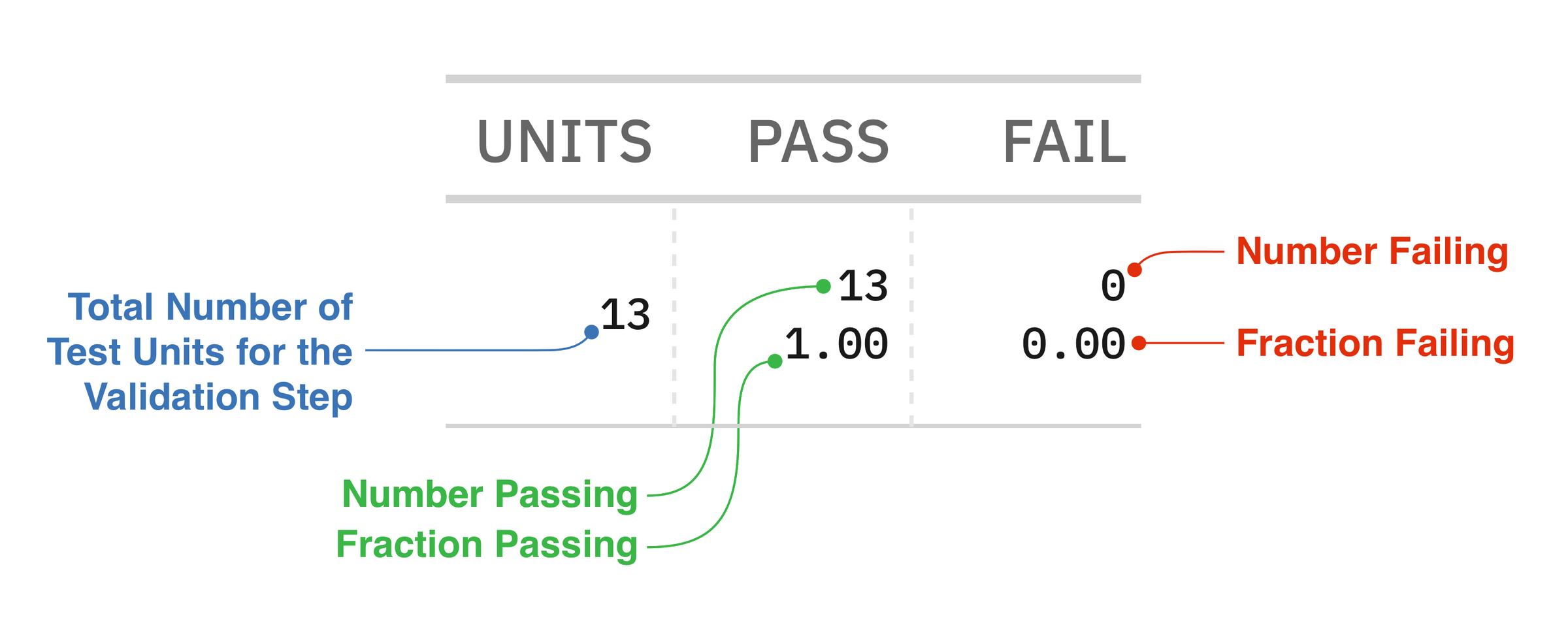 All of those numbers under the UNITS, PASS, and FAIL columns have to do with test units, a