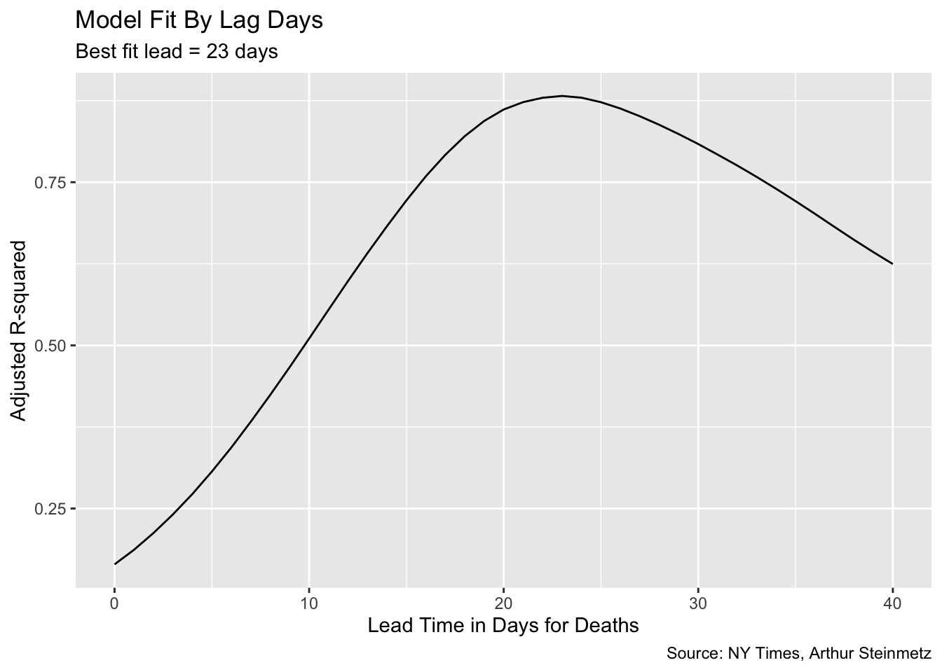 This was an exciting project because I got some validation of my approach. I am NOT an epidemiologist or a professional data scientist. None of the results I show here should be considered authoritative. Still, while I was working on this project I saw this article in the Wall Street Journal which referenced the work by Dr. Trevor Bedford, an epidemiologist at the University of Washington. He took the same approach I did and got about the same result.