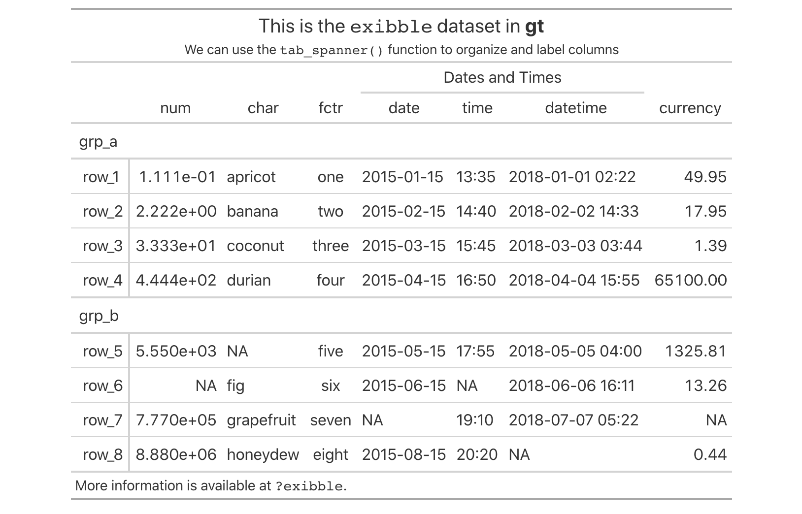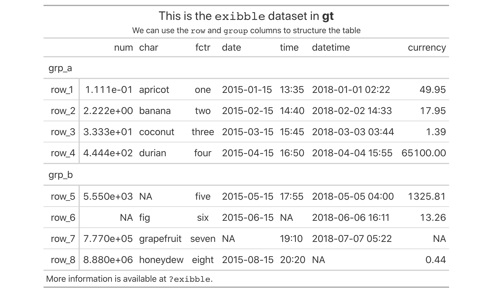 The exibble dataset is included in gt and its raison d’etre is