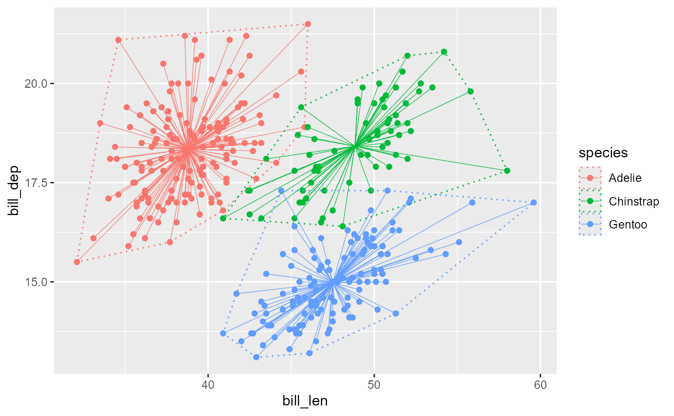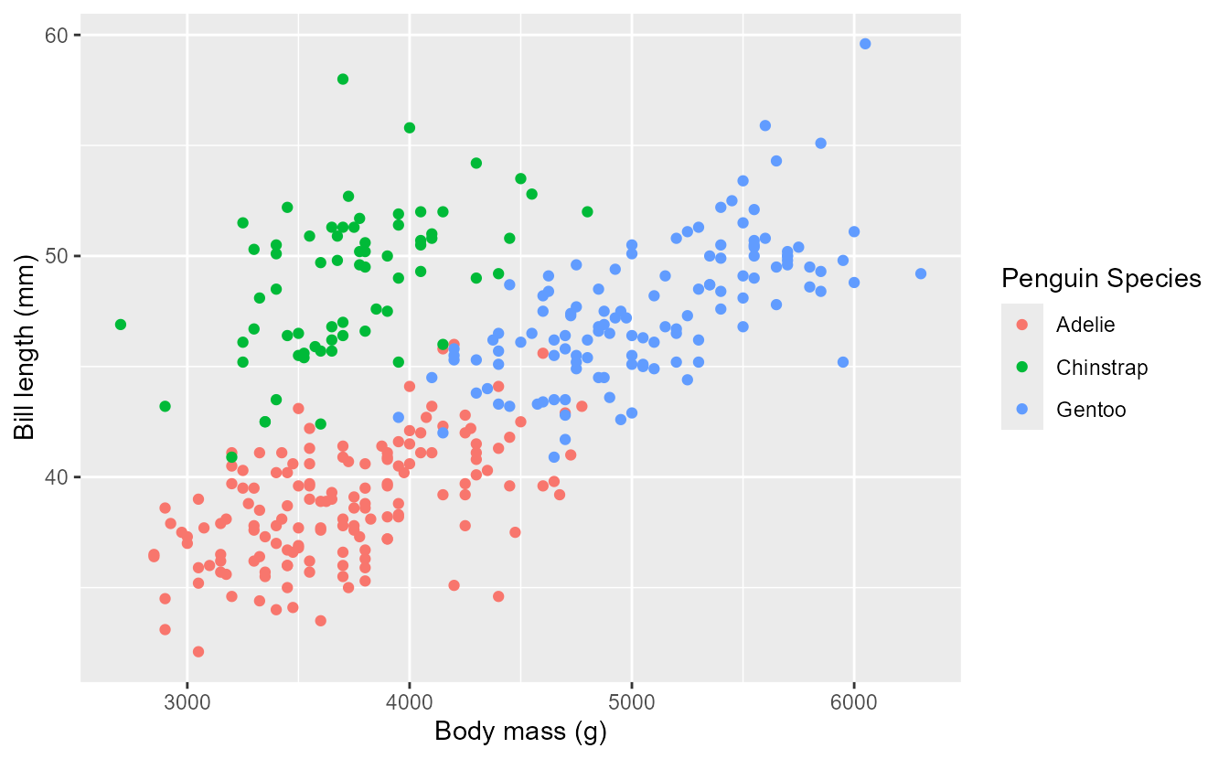 p <- ggplot(penguins, aes(bill_dep, bill_len, colour = species)) +