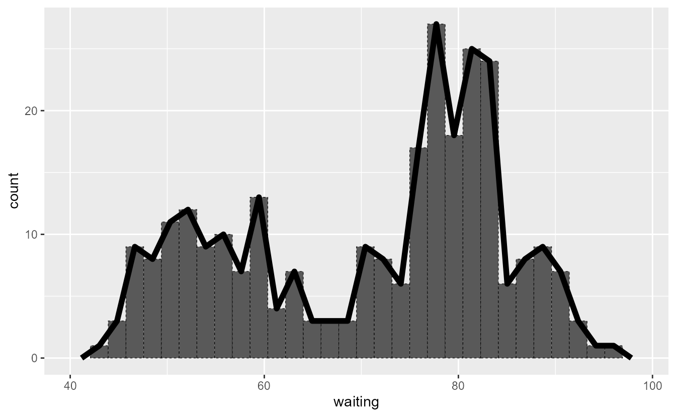 ggplot(faithful, aes(waiting)) +