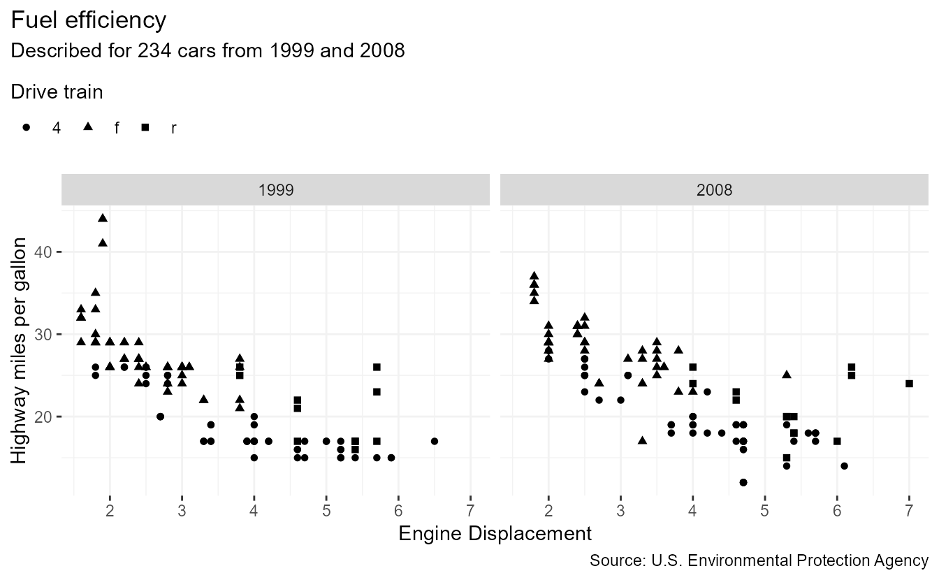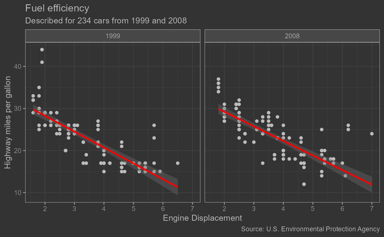subtitle = paste0("Described for ", nrow(mpg), " cars from 1999 and 2008"),
