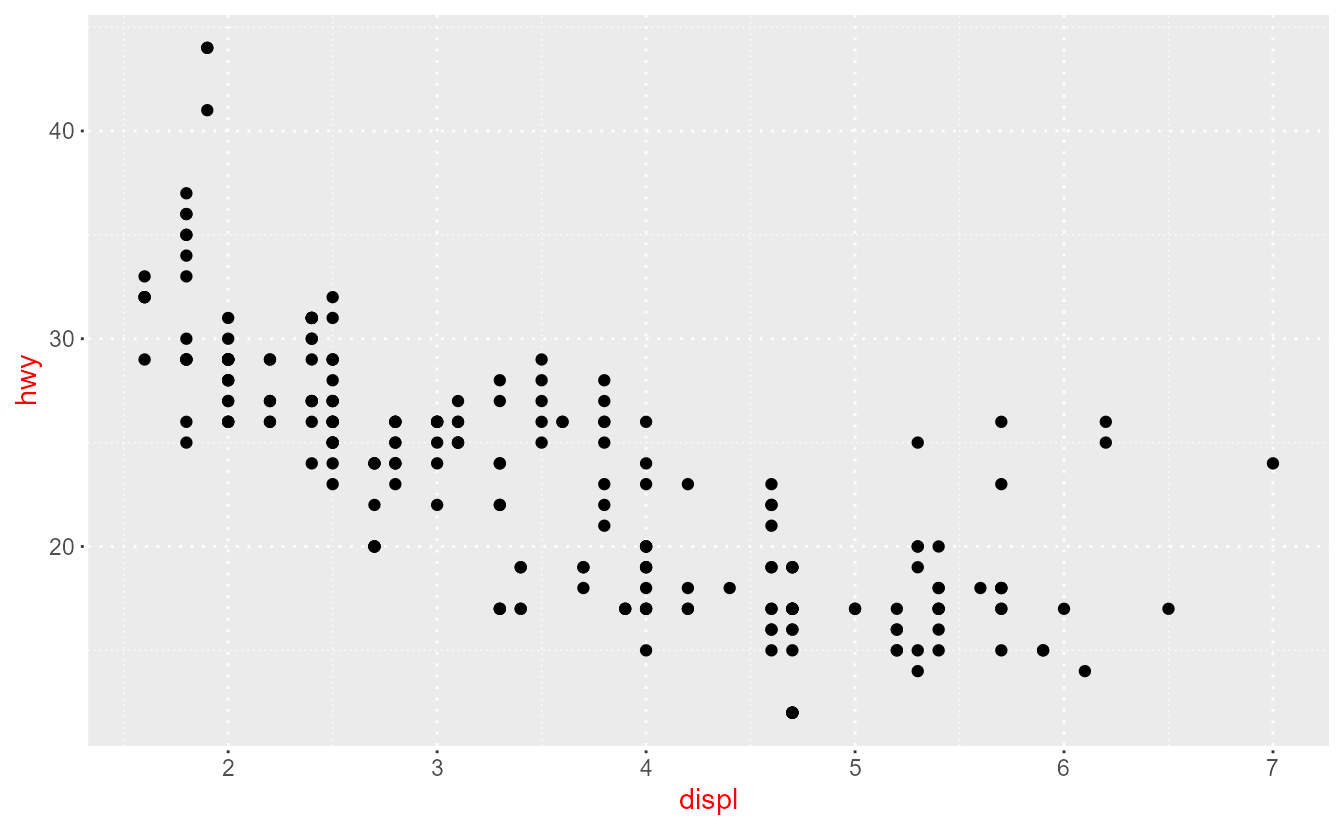 Rather than swapping out complete themes in one fell swoop, themes can also be tweaked to various degrees. In ggplot2, themes are a collection of theme elements, where an element describes a property, or set of properties, for a part of the theme.